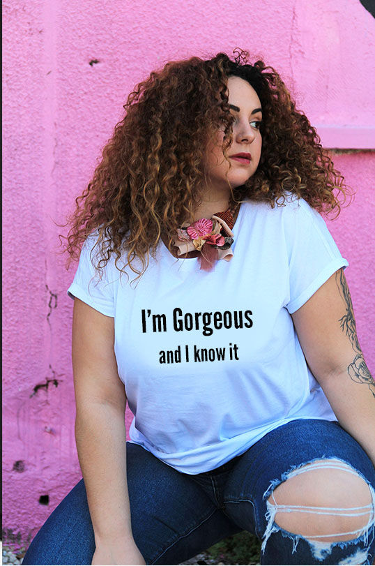 חולצה לבנה מעוצבת בהדפס I'm gorgeous and I know it